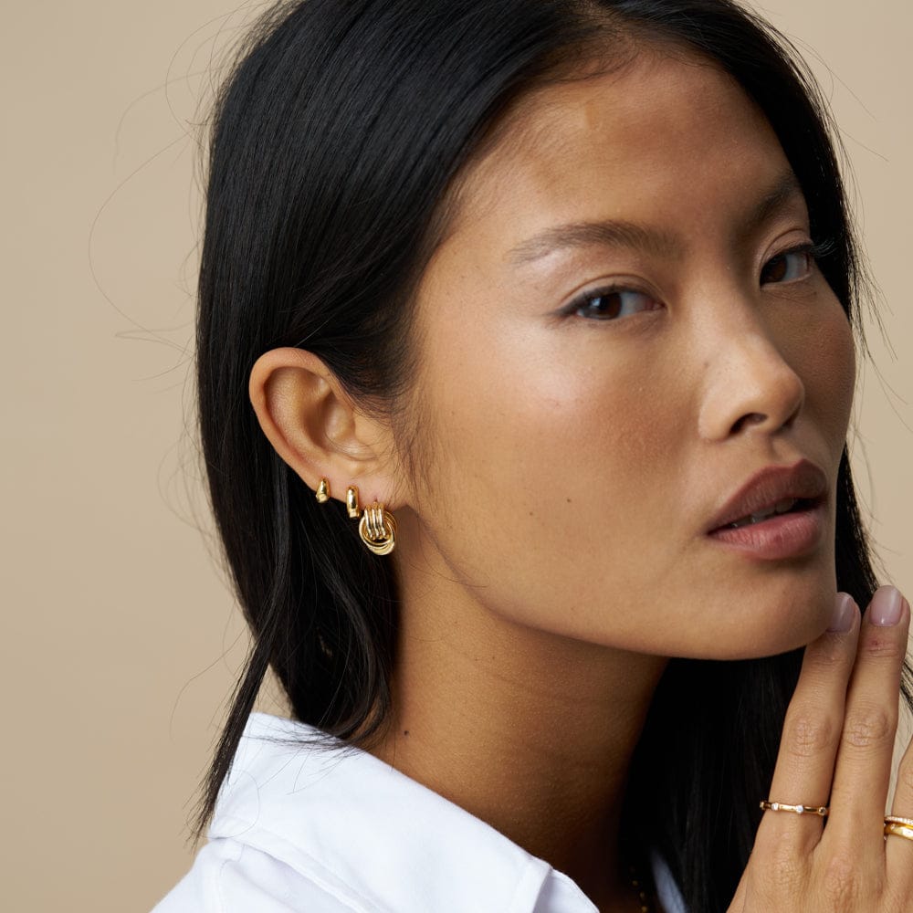 Sleek, polished, and perfectly intertwined, The Gold Mini Polished Interlocking Earrings showcase clean lines for versatile, understated style.