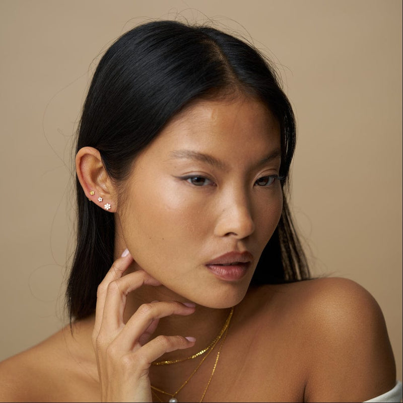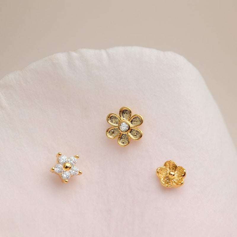 A versatile set of floral stud earrings in varying sizes and designs. Our Mixed Floral Stud Ear Stacking Set allows for creating your own ear stacks, with the ability to mix, match, for a playful, look or wear individually for a delicate, everyday touch.