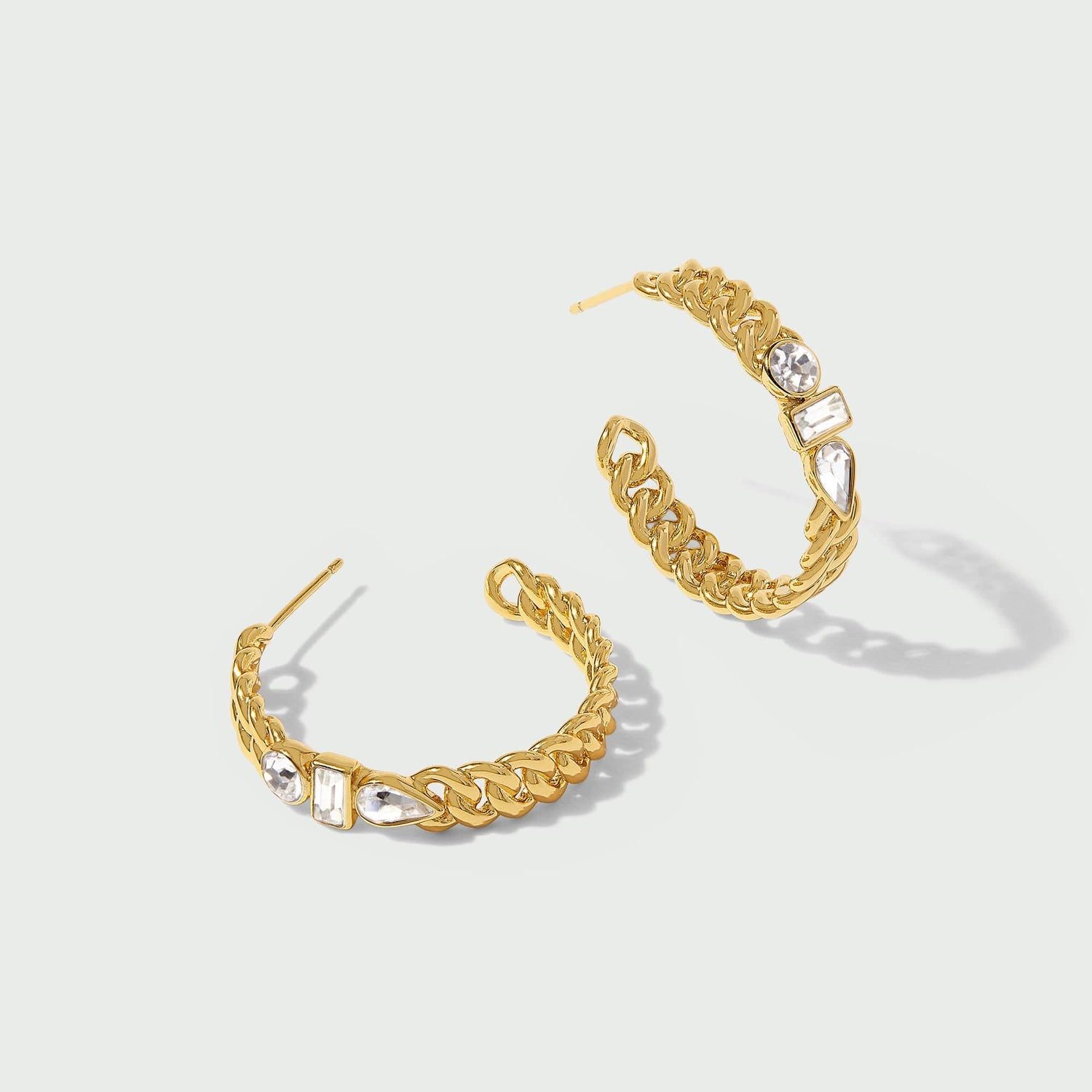 Mixed Gem Chain Hoop Earrings