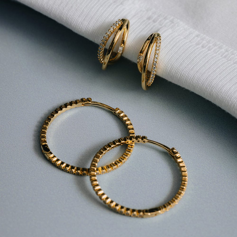 The Mixed Pavé Triple Illusion Hoop Earrings create the look of three radiant hoops with just one piercing. Featuring a blend of shimmering pavé stones, these earrings deliver multidimensional sparkle in a sleek, modern silhouette.