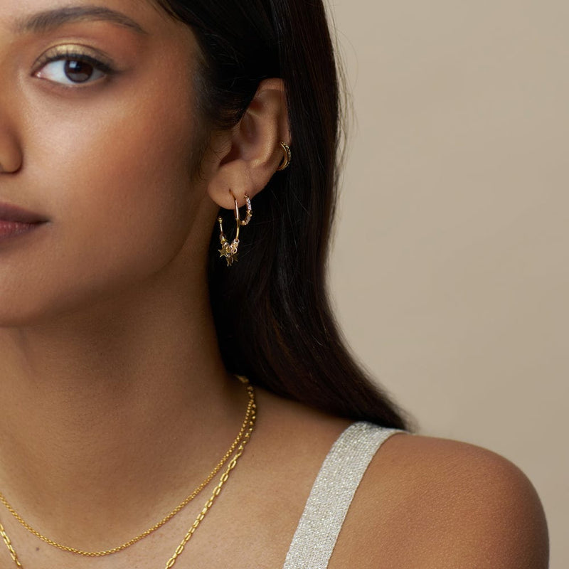 The Mixed Plate Bead & Star Hoop Earrings put a contemporary spin on a beloved classic. Combining silver beading with gold star accents for subtle, creating dynamic movement that commands attention without shimmer.
