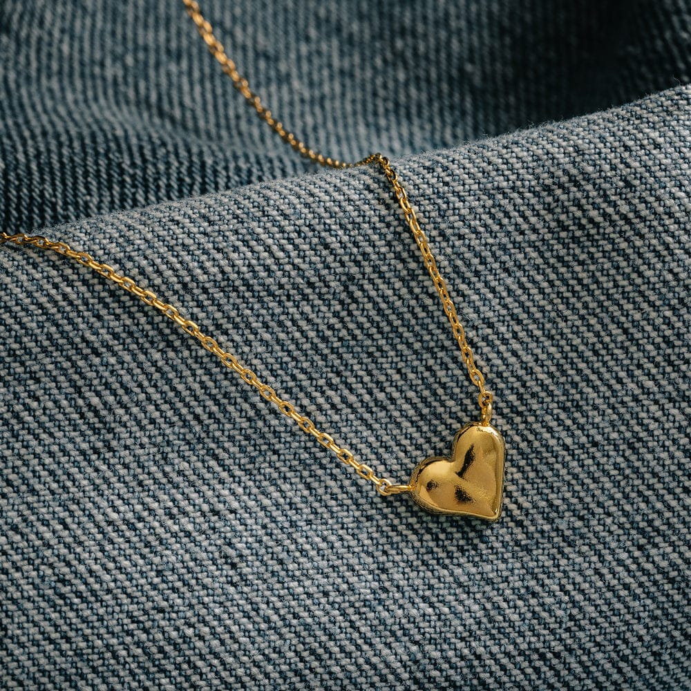 The Molten Heart Stationed Necklace features a petite molten textures heart charm on a fine 18k gold plated chain. Layer with other pendants or a bold chunky chain and pair with a crisp white shirt and cosy knit.
