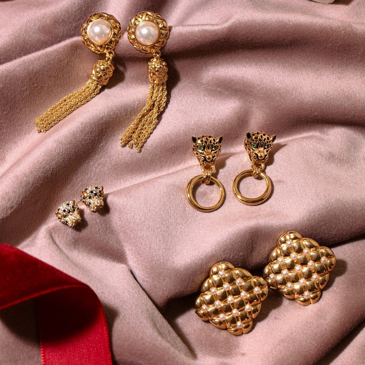 Add a striking new look to your ear collection with the Pave Panther Stud Earrings.