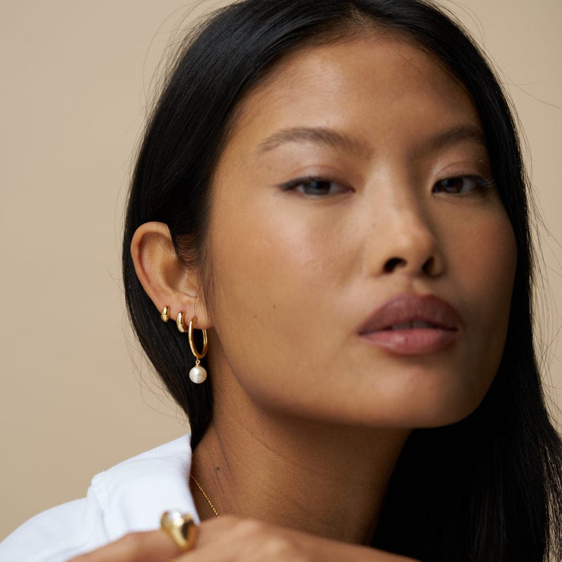 Pearl Drop Mid-Size Hoop Earrings