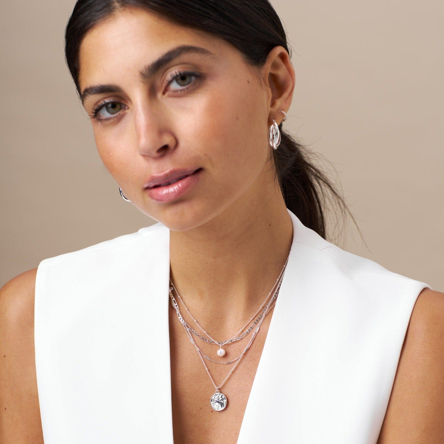 This Single Pearl Satellite Necklace in Silver is a modern day twist on the classic & timeless pearl necklace.