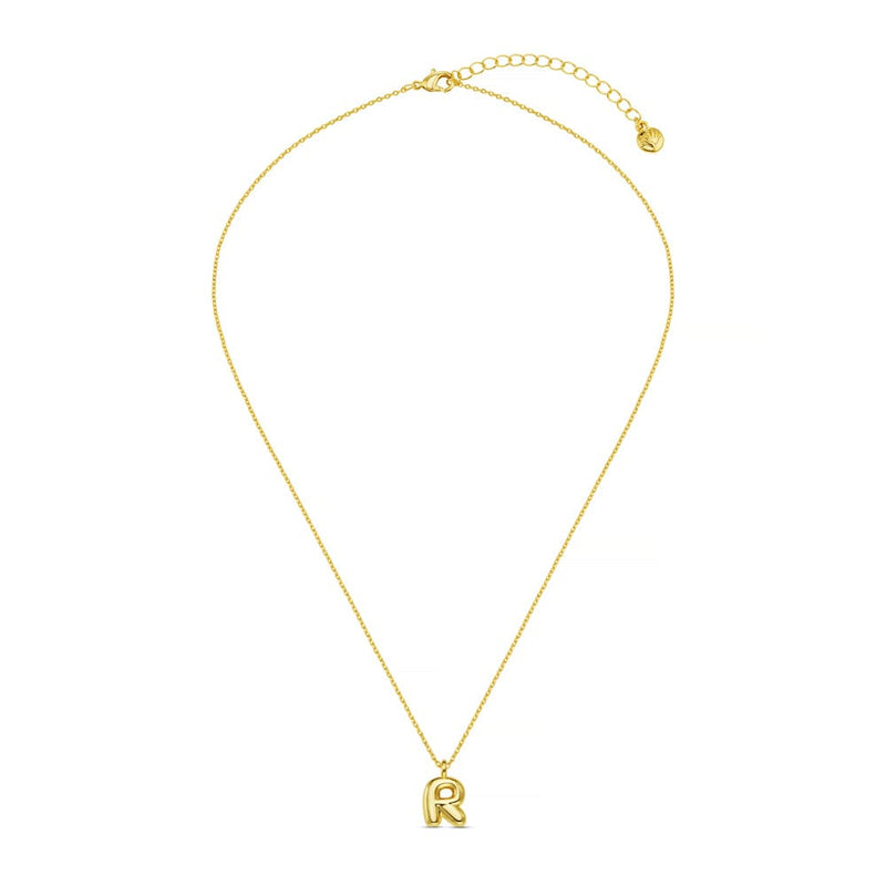 The chunky gold, bubble 'R' initial suspends from a classic chain, creating a minimalist piece that’s perfect for everyday wear or layering with other favourites.