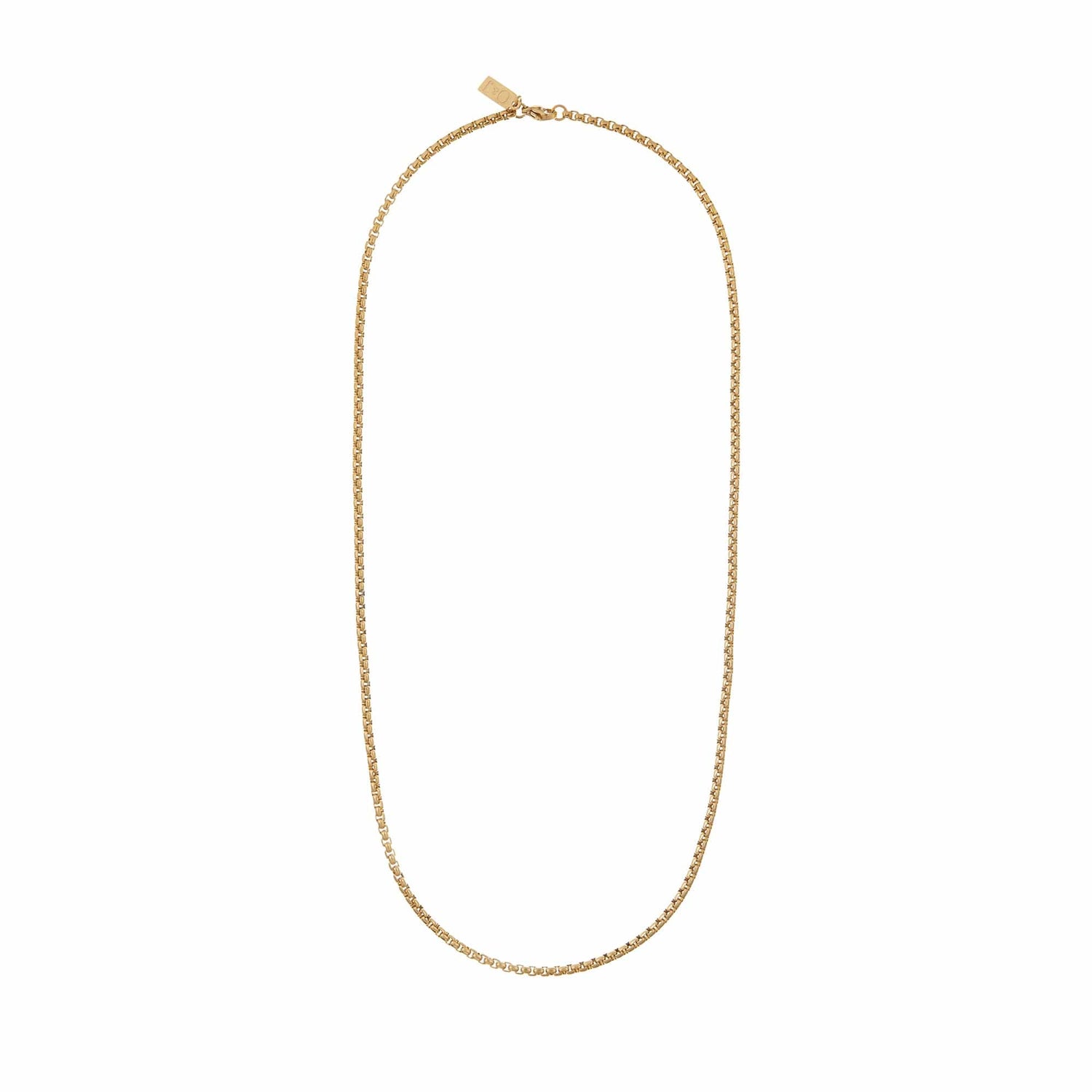 This Round Box Chain Necklace in Gold fits into any necklace collection.