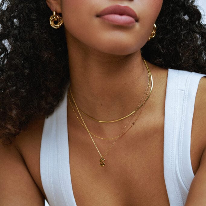 The chunky gold, bubble 'S' initial suspends from a classic chain, creating a minimalist piece that’s perfect for everyday wear or layering with other favourites.
