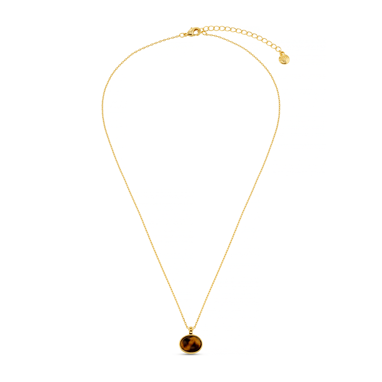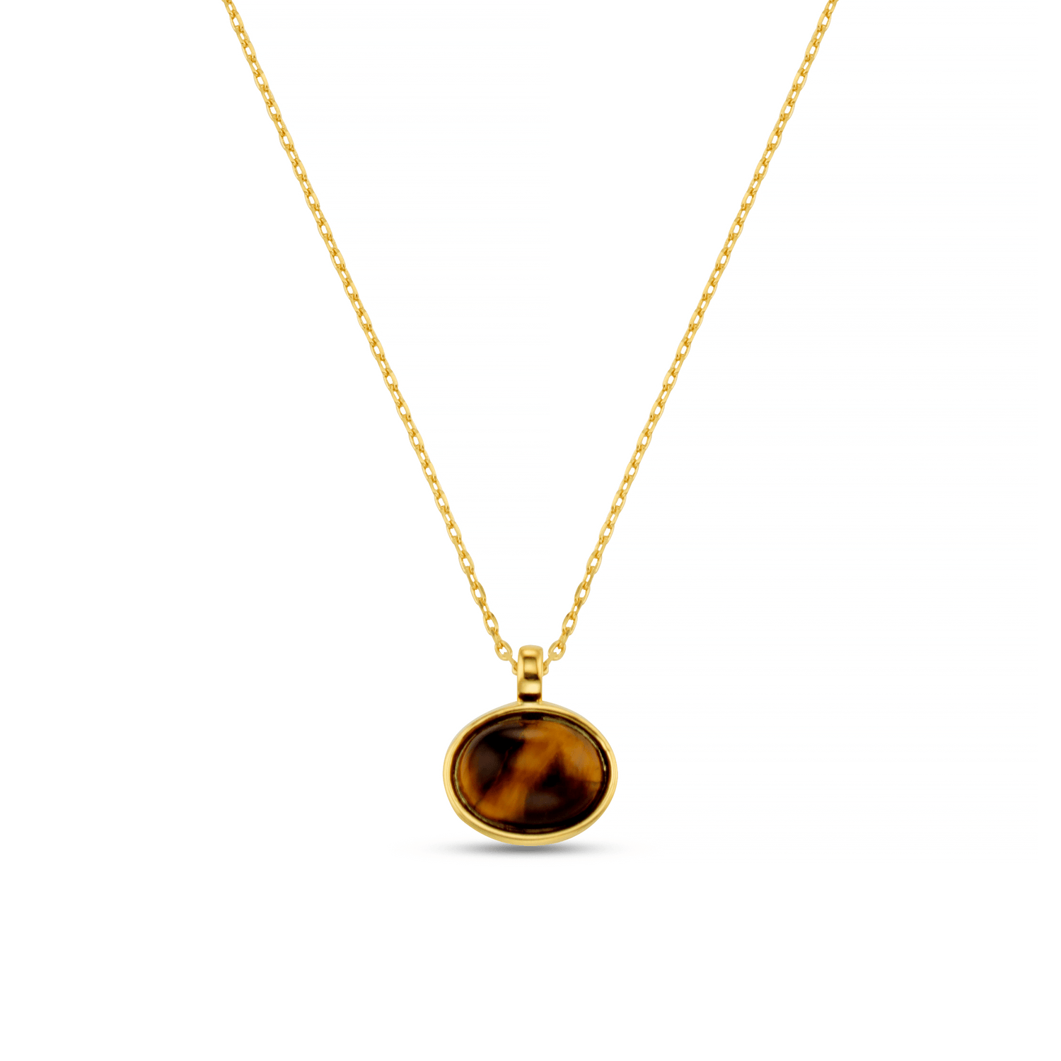 Our Semi-Precious Tiger’s Eye Pendant Necklace features a rich, golden-brown tiger’s eye stone known for its captivating shimmer and protective energy. Set in a sleek gold-tone frame and suspended from a fine chain, this pendant brings warmth, depth, and subtle statement to your look.