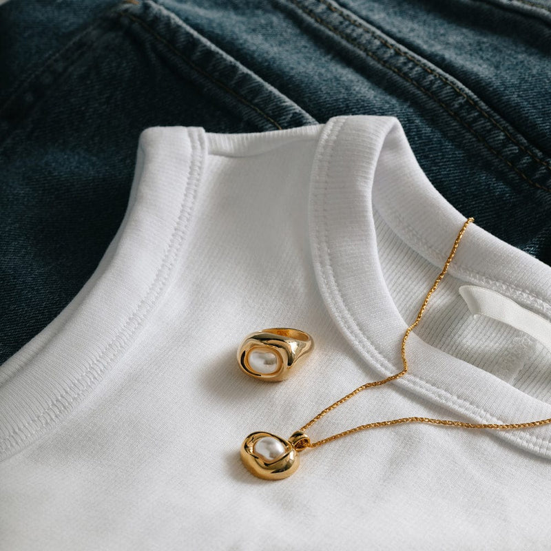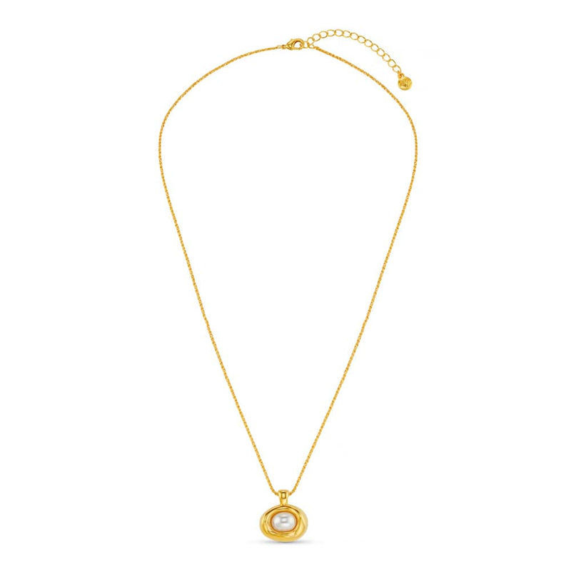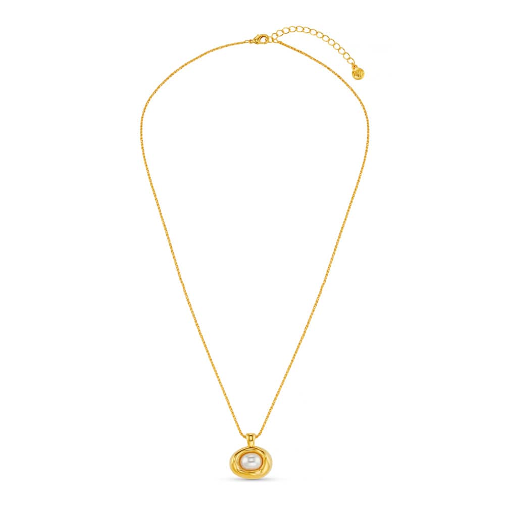 Irregularly shaped, the Statement Molten Pearl Necklace creates a sculptural, eye-catching design that rests beautifully along the neckline. Perfect for making a sophisticated statement for any occasion.