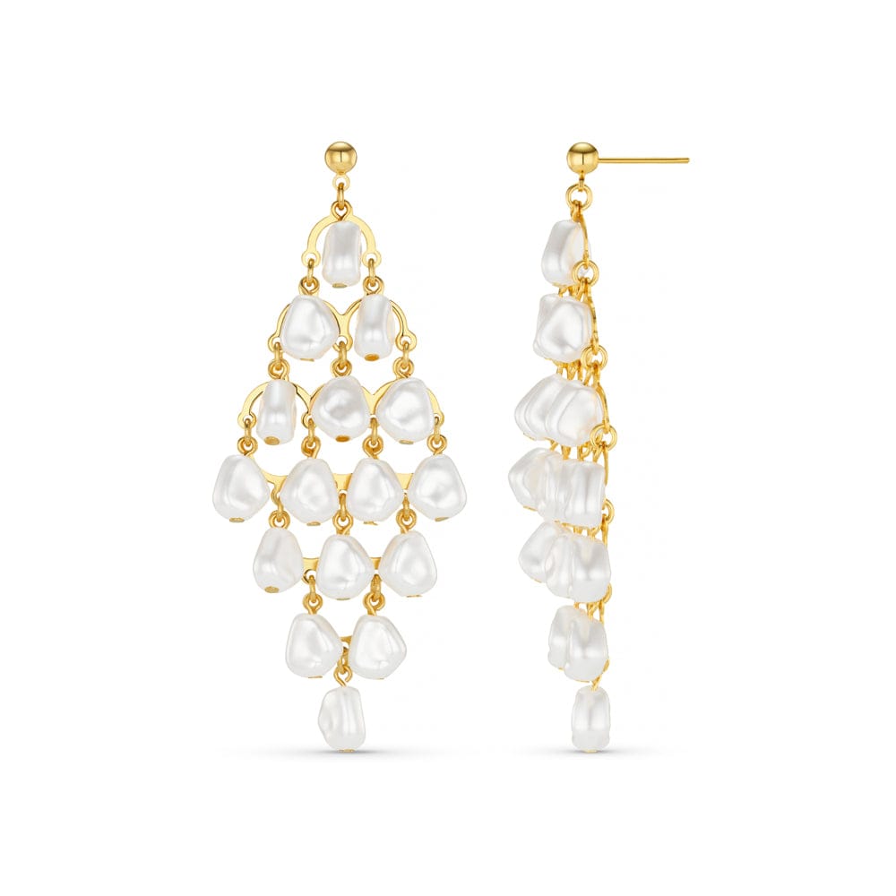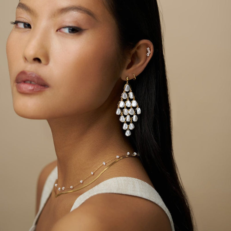 The Statement Pearl Chandelier Drop Earrings feature cascading pearls in a chandelier formation. Lightweight, eye-catching, and perfect for weddings, special events and beautiful, effortless way to stand out.