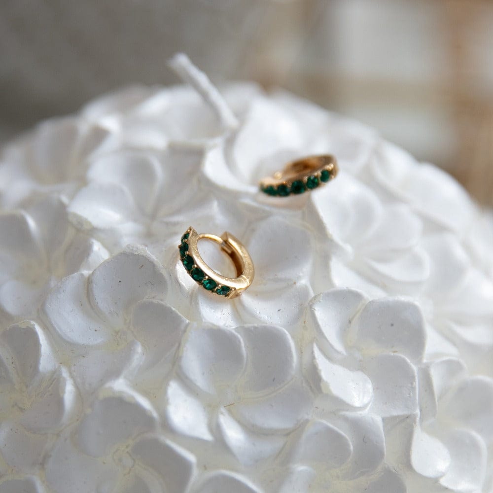 Emerald Huggie Hoop Earrings Made With Swarovski® Crystals - Gold