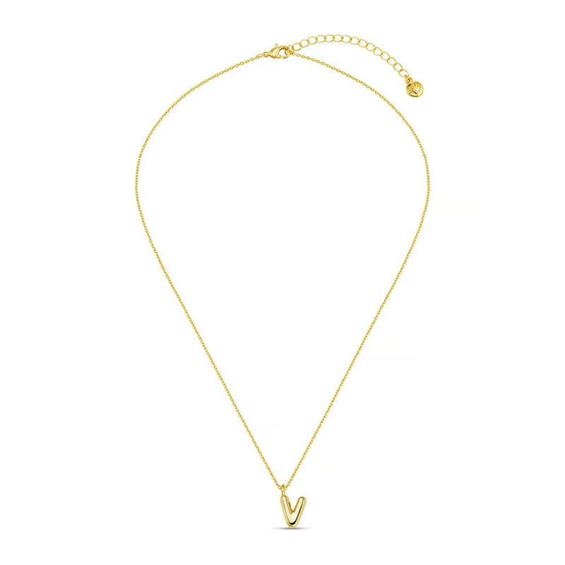 The chunky gold, bubble 'V' initial suspends from a classic chain, creating a minimalist piece that’s perfect for everyday wear or layering with other favourites.