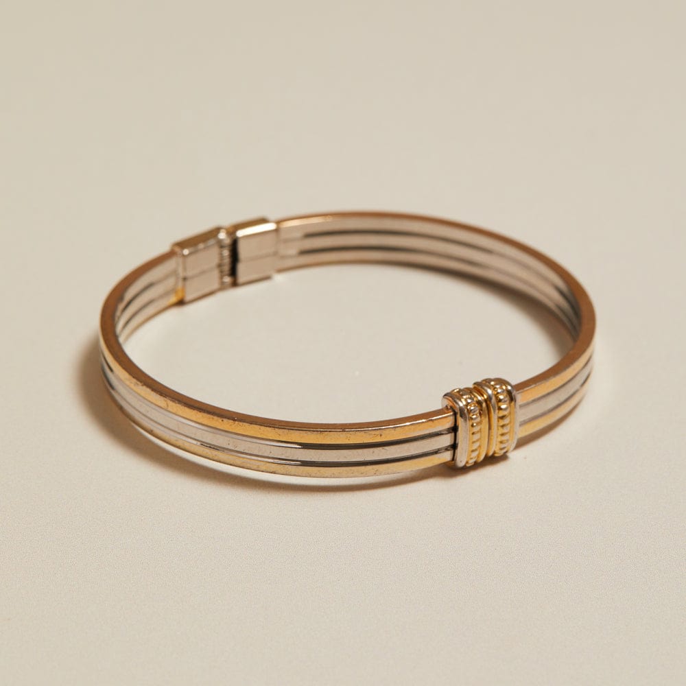 Classic and refined, this smooth linear Vintage Mixed-Plate Bangle brings subtle texture and vintage style. Perfect for those who love to mix metals.