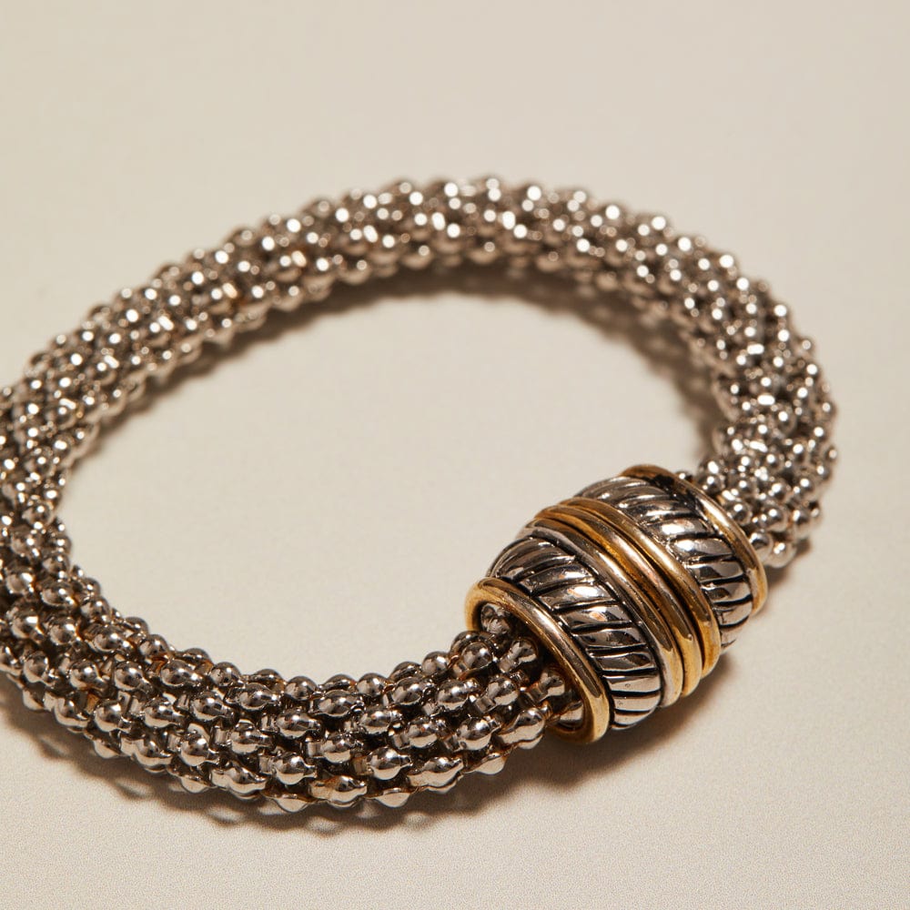 Classic craftsmanship meets modern style in this vintage mixed-plate chainmail bracelet, perfect for layering or wearing solo.