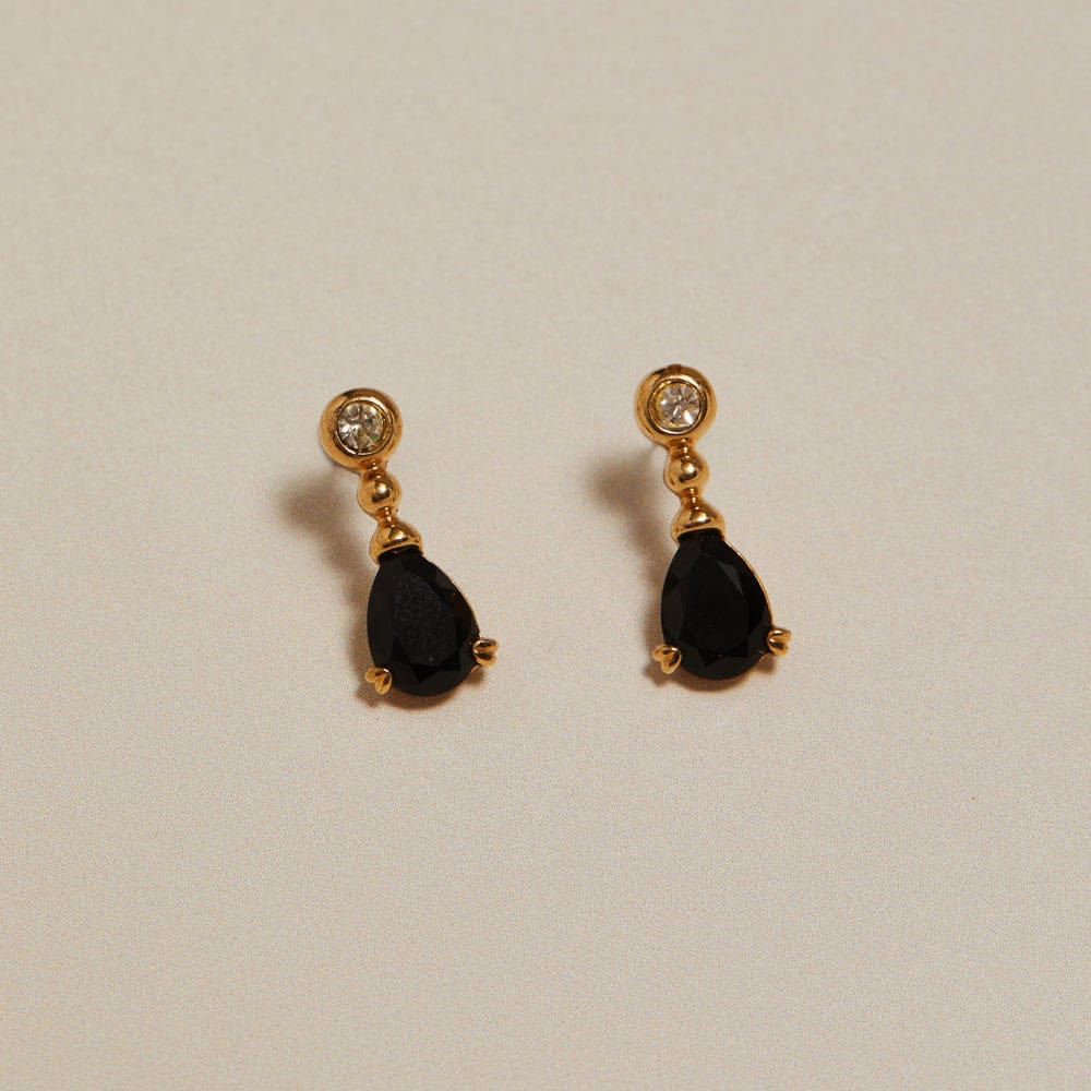 Beautiful vintage drop earrings with delicate onyx & crystal detail.
