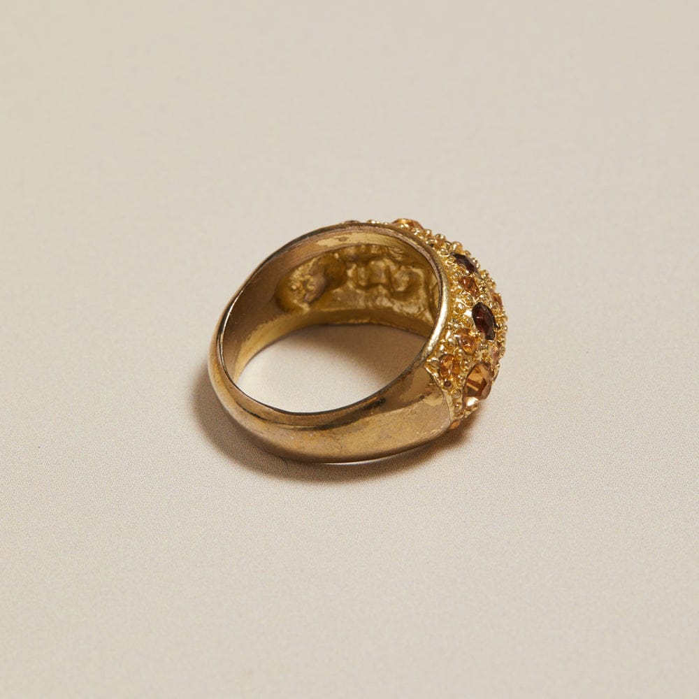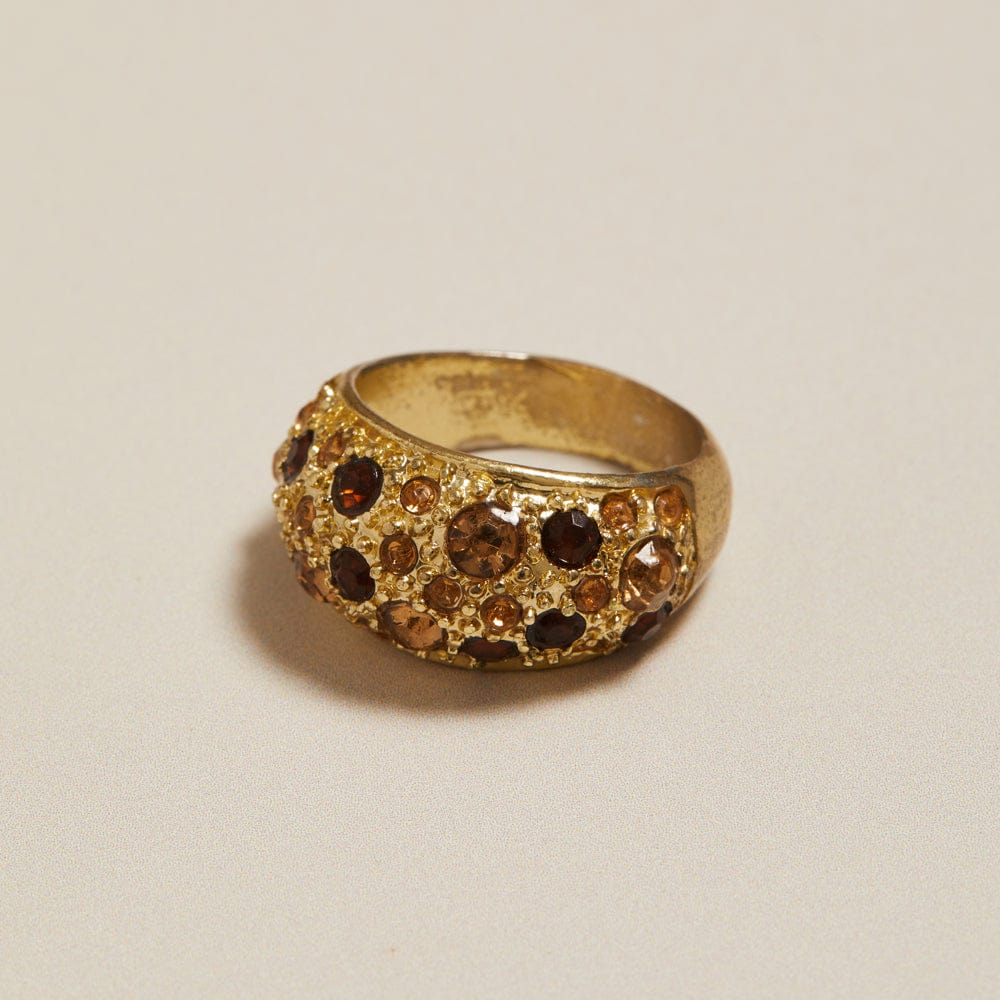 A vintage treasure with depth and sparkle, with a domed silhouette and multi toned crystal accents.