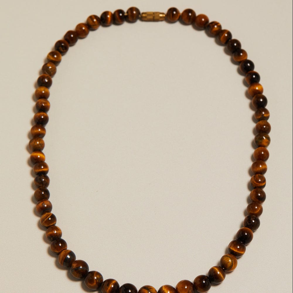 Warm, earthy tones and vintage charm define this Tiger’s Eye Beaded Necklace. Layer with more tonal or contrasting beads for an impactful effect.