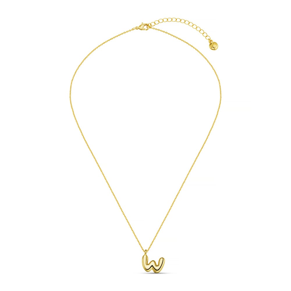 The chunky gold, bubble 'W' initial suspends from a classic chain, creating a minimalist piece that’s perfect for everyday wear or layering with other favourites.